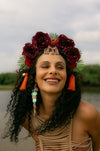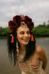 Arco com coração da thailandia e franjas central, flores de tecido e detalhes em tassel. Criado para elevar seu poder pessoal através do seu vestir.