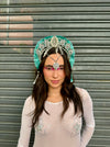 Arco produzido com patchs em pedraria de strass, detalhes de correntaria, bordados e franja de seda. Criado para elevar seu poder pessoal através do seu vestir.