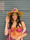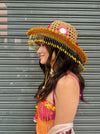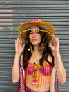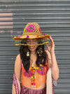Chapéu produzido com espelhos de estrela, fitas com miçangas e pompons, materiais garimpados no Peru. Criado para elevar seu poder pessoal através do seu vestir.