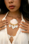 Choker com banho, produzida com maxi concha e pérolas de tamanhos variados.