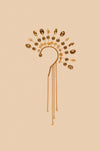 Earcuff produzida com pedrarias em tom dourado, fio de strass com banho