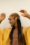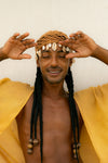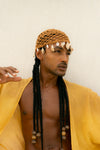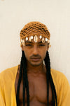 Touca de crochê adornada com Buzios e conchas naturais variadas.