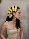 Earcuff produzida com penas douradas e pedrarias. Criado para elevar seu poder pessoal através do seu vestir.
